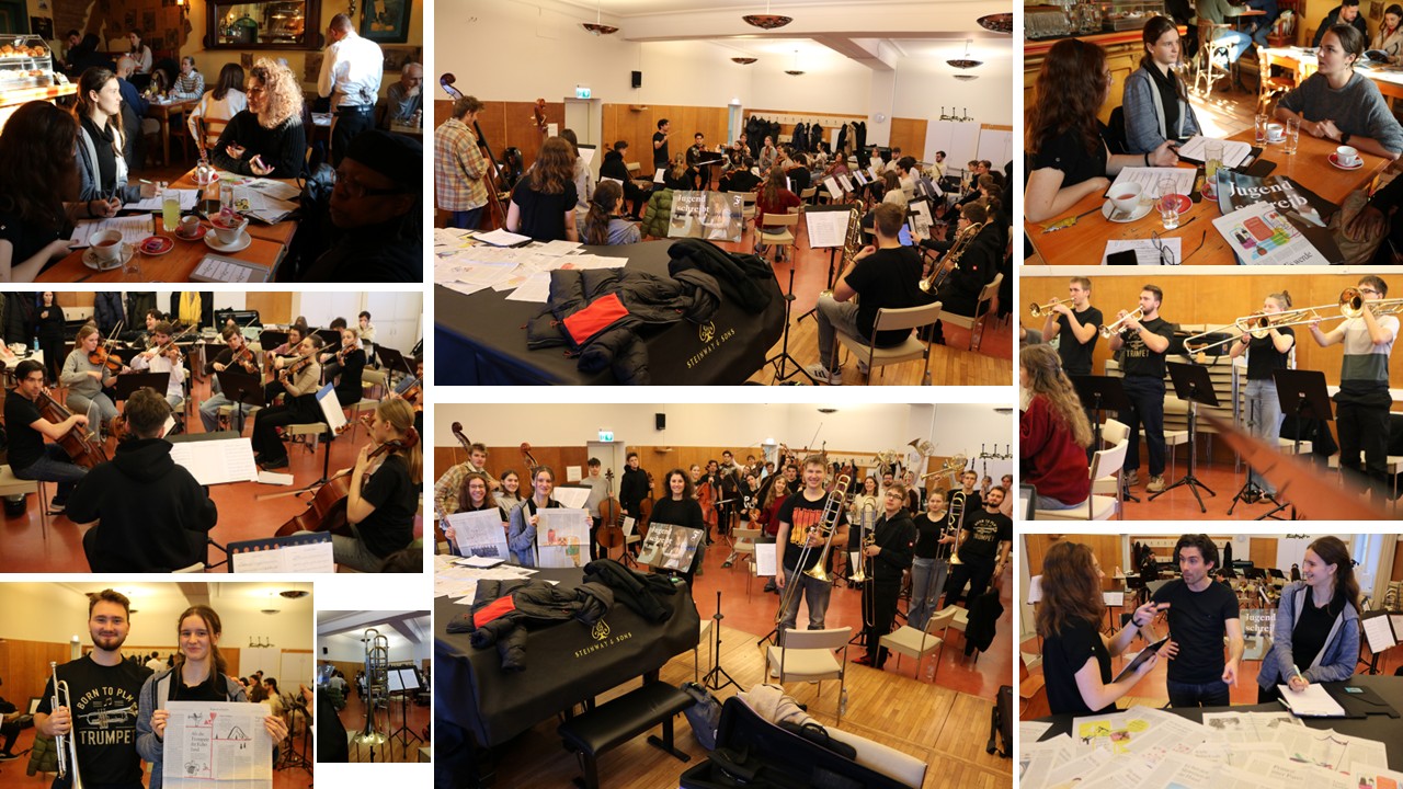 Sonntag, 30.11.2025, Ljubljana: Ein Recherchetag mit dem Slowenischen Jugendorchester; in Gesprächen mit der Gründerin und Leiterin Živa Ploj Peršuh, mit einer Teilnahme an der Konzertprobe (11:00 – 17:00 Uhr) mit 35 Jugendlichen, darunter zehn aus der Ukraine, die professionell eingestellt und gerade deshalb entspannt in einer Sprache sprechen, auch mit Beethoven, Haydn, Mozart, Strauss, Vivaldi und anderen mehr. Aber auch mit dem Musiker und Comedian Tilen Artac als Dirigenten des Orchesters, mit Musikakrobatik zu Tiefkühlkost-Jingles, dem „Anton von Tirol“ in klassischer Aufführung, und mit Slavko Avseniks „Trompetenecho („Na Golici“) als unerwartetem, wenn auch unvermeidlichem Zwischenspiel.
