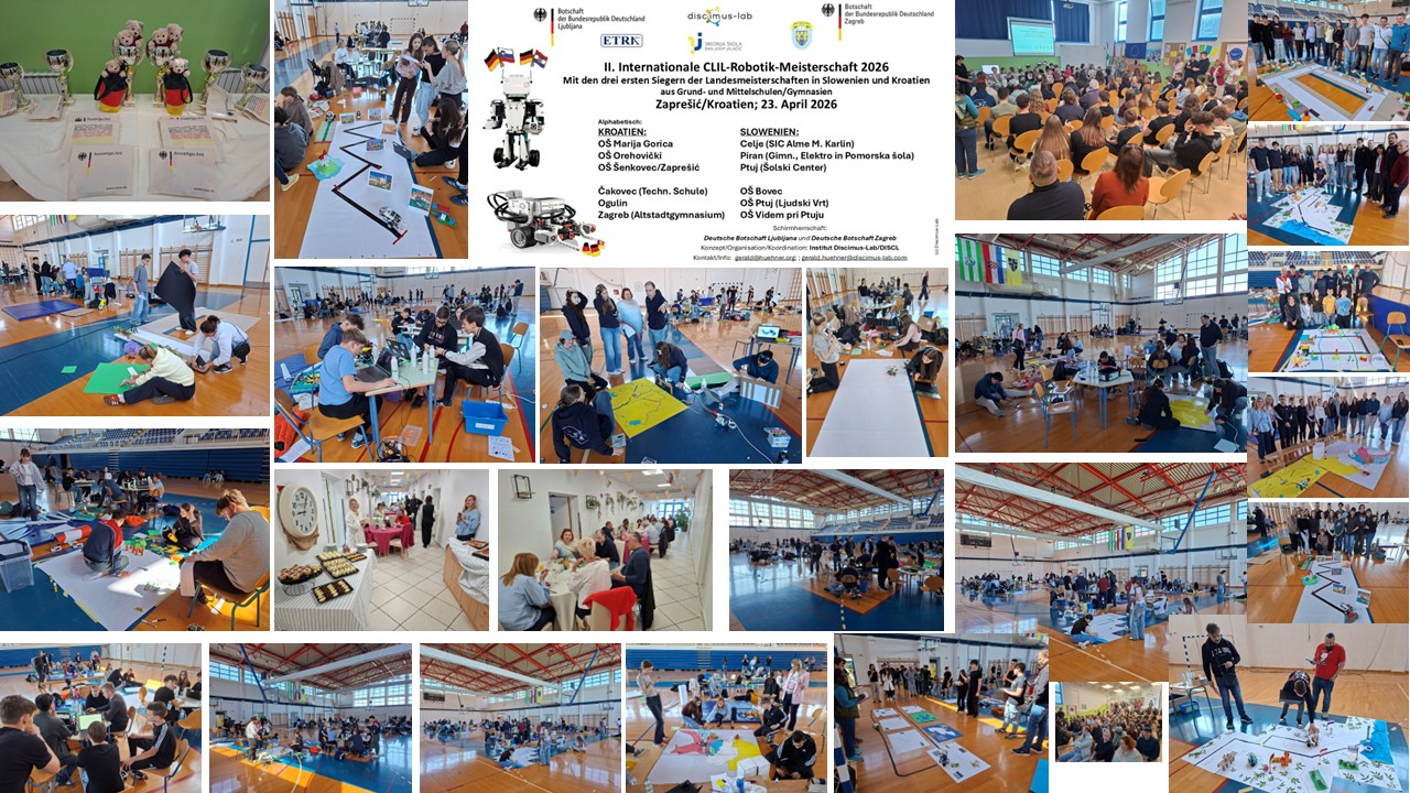 Herzlichen Glückwunsch allen Teilnehmerinnen und Teilnehmern für großartige Beiträge, und besten Dank für das Engagement und die teils lange Anreise. Besonderen Dank gilt den Deutschen Botschaften in Ljubljana und Zagreb für die Übernahme der Schirmherrschaft, der Jury, allen Unterstützern, insbesonde Etra d.o.o. aus Celje, und Schülerinnen, Schülern, Personal der Mittelschule Zaprešić mit Schulleiter Dr. Alan Labus und Projektkoordinatorin Ida Globočnik: Hervorragende Gastgeber!